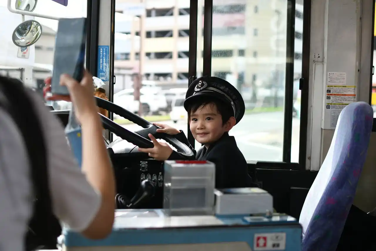 その他、ハンドルやアクセル、ブレーキペダルを使って、実際の運転に近い臨場感でバスの運転を疑似体験できる「ドライブシミュレーター」や、子ども用の運転士の制服・制帽を試着してバスの運転席に座り、運転士気分を味わえる「ちびっ子運転士体験・撮影会」などのコンテンツも登場します! |