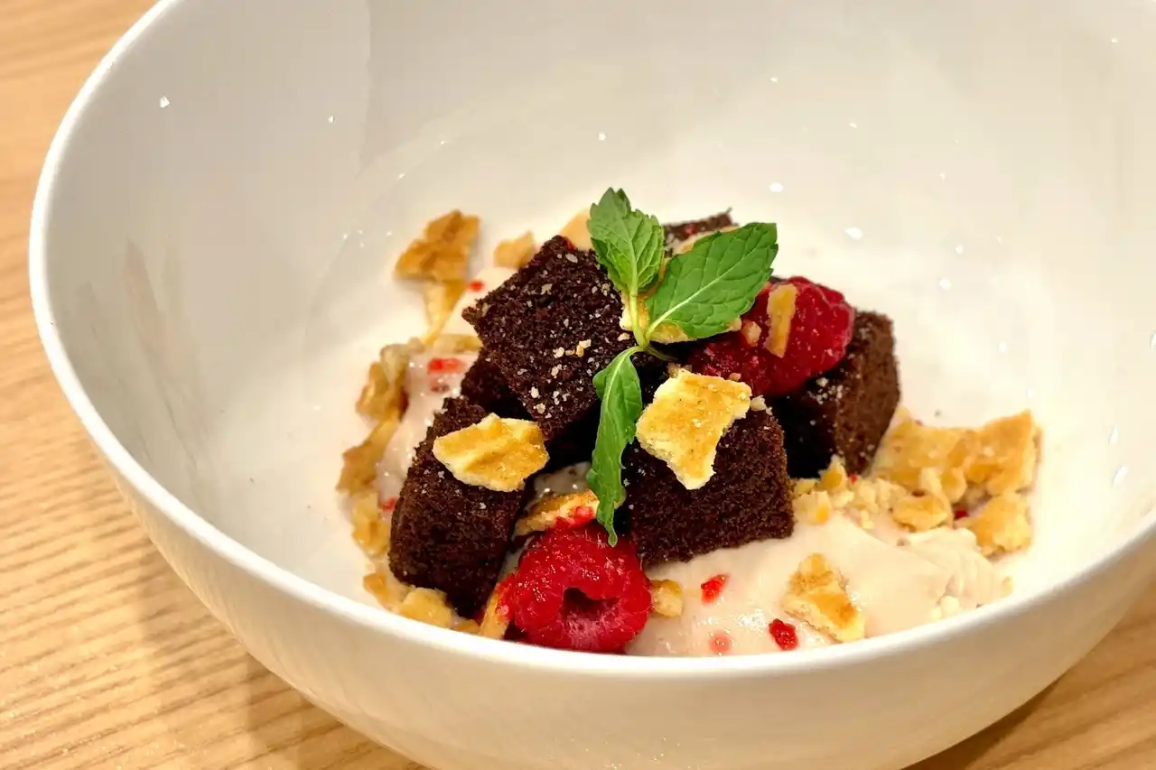 ふんわり広がるほうじ茶の香りをまとわせた濃厚パンナコッタに、甘酸っぱいラズベリーを合わせたクラッシュドタルト。サクサク食感を楽しめるよう、仕上げにタルトクランブルを振りかけています。たっぷりの牛乳で仕立てたなめらかな口あたりに、丁寧に煎り上げたほうじ茶の芳ばしさとラズベリーの酸味が重なり、ひと口ごとに奥行きのある味わいをお楽しみいただけます。和と洋が絶妙に調和する、大人のためのデザートです。 |