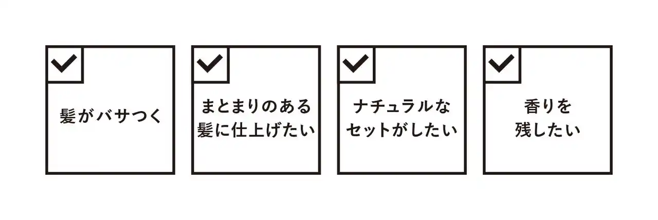 | 髪のパサつきや広がりを抑えながら、自然なまとまりとツヤを演出します。 | |||||||||||