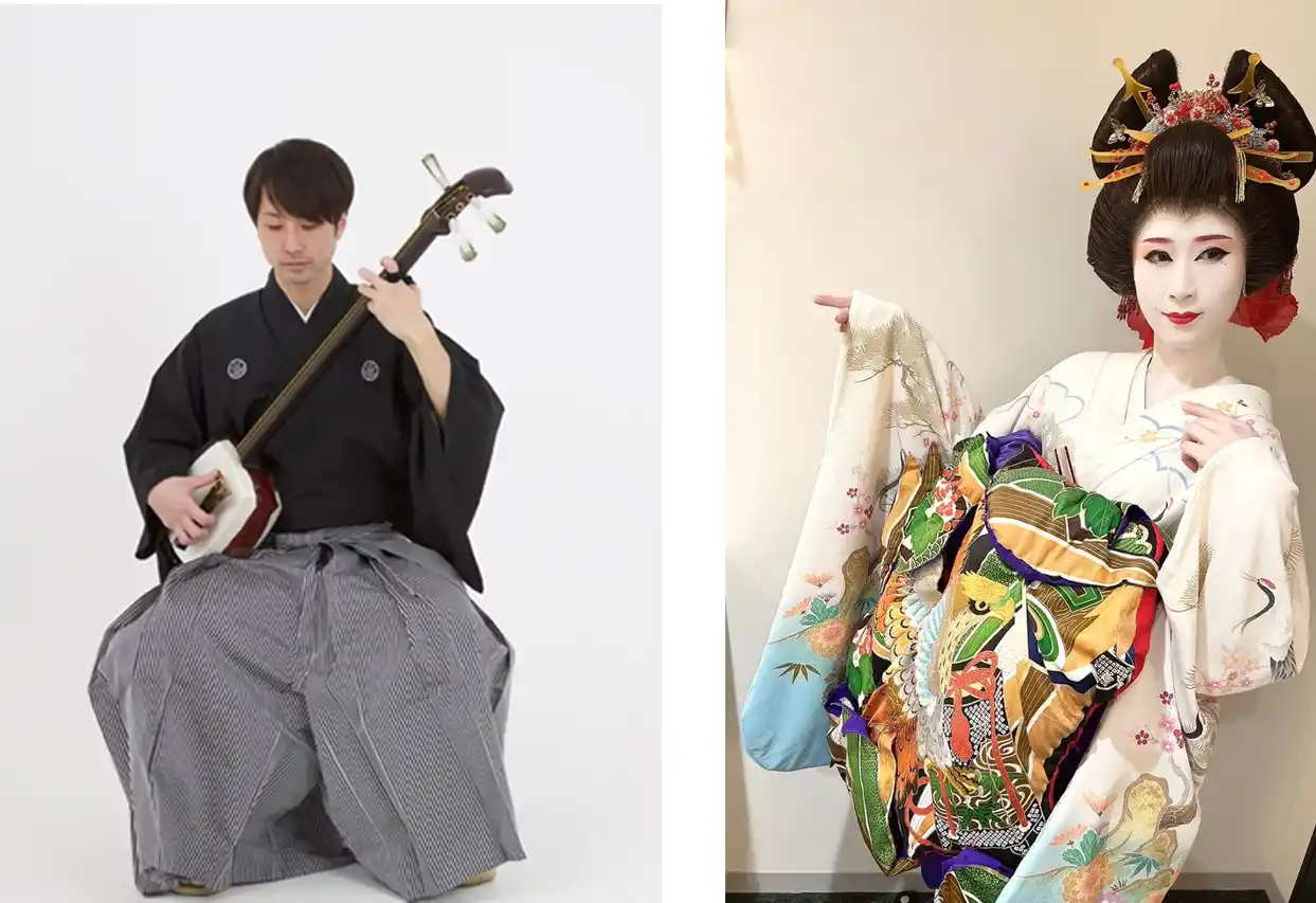 <津軽三味線と日本舞踊演舞> |
