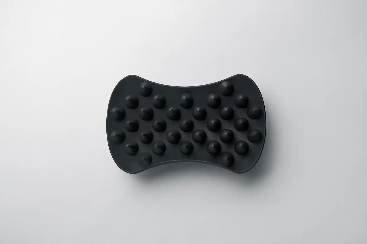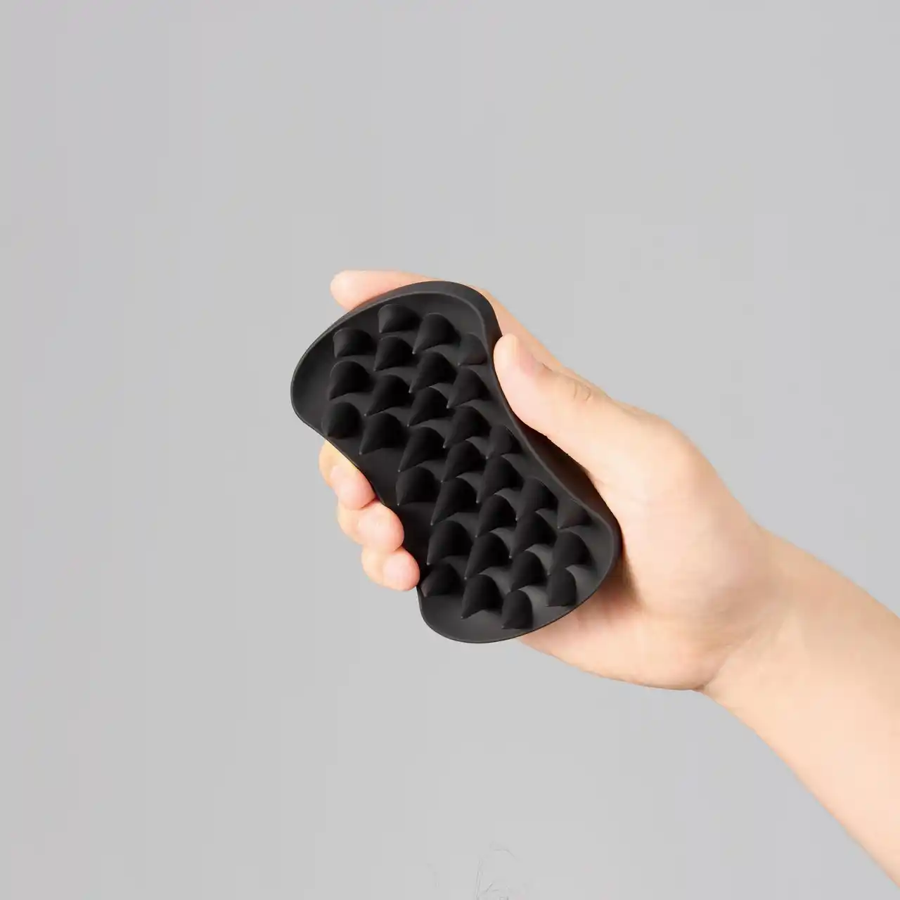 つなぎ目やパーツの切り替えがない一体型形成で、洗いやすく衛生的なシリコン素材を採用したスキャルプブラシ。男性が「ちょうどいい」と感じる弾力のあるソフトな突起と、しっかり握れて腕が疲れにくい形状、一度で広範囲をマッサージできる大きめサイズが特徴です。頭皮の上を滑って傷つくのを防ぐため、ブラシ先端にしなやかさと適度な弾力を持たせて、頭皮をしっかり捉えて動かす設計です。 |