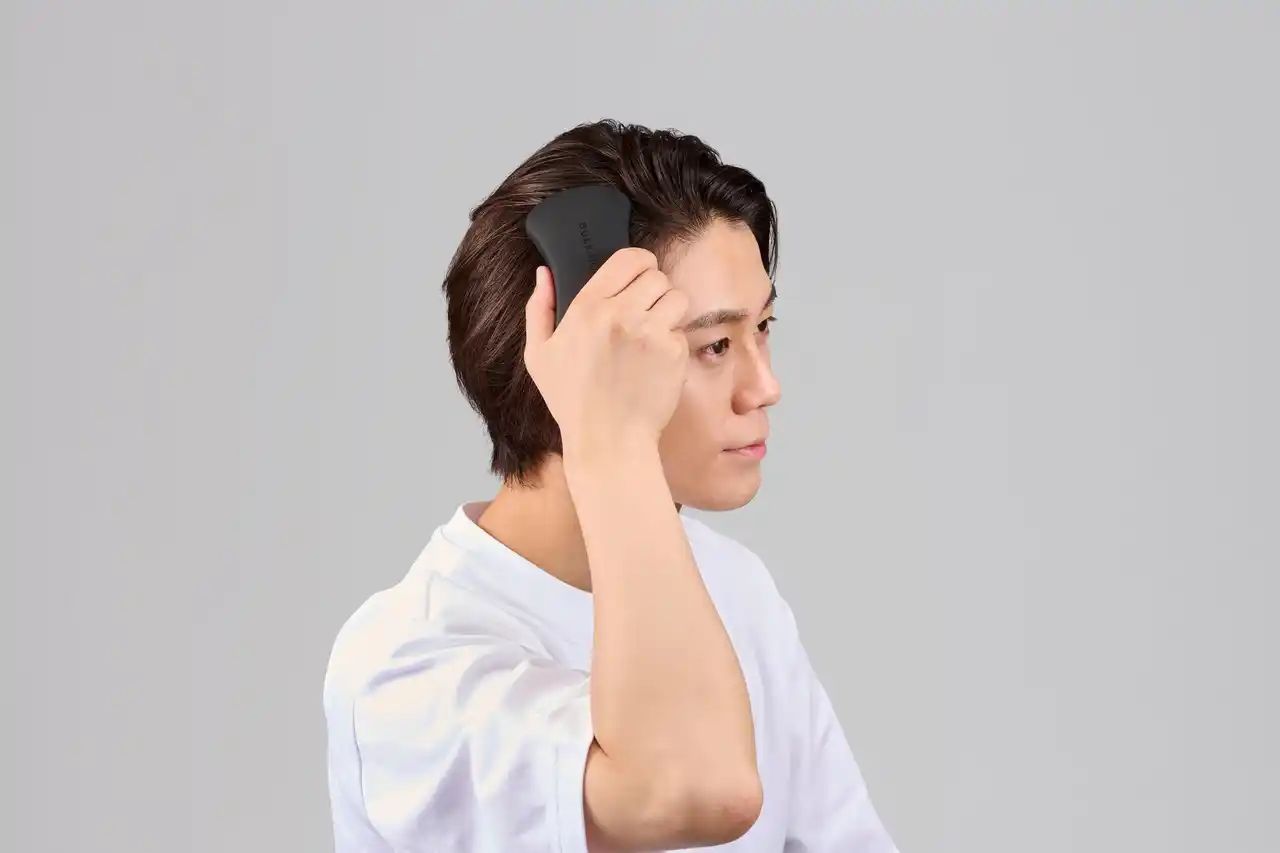 男性の手のサイズに最適化された大きめの設計により、一度で広範囲の頭皮にアプローチし、効率的に洗浄・マッサージすることが可能です。 |