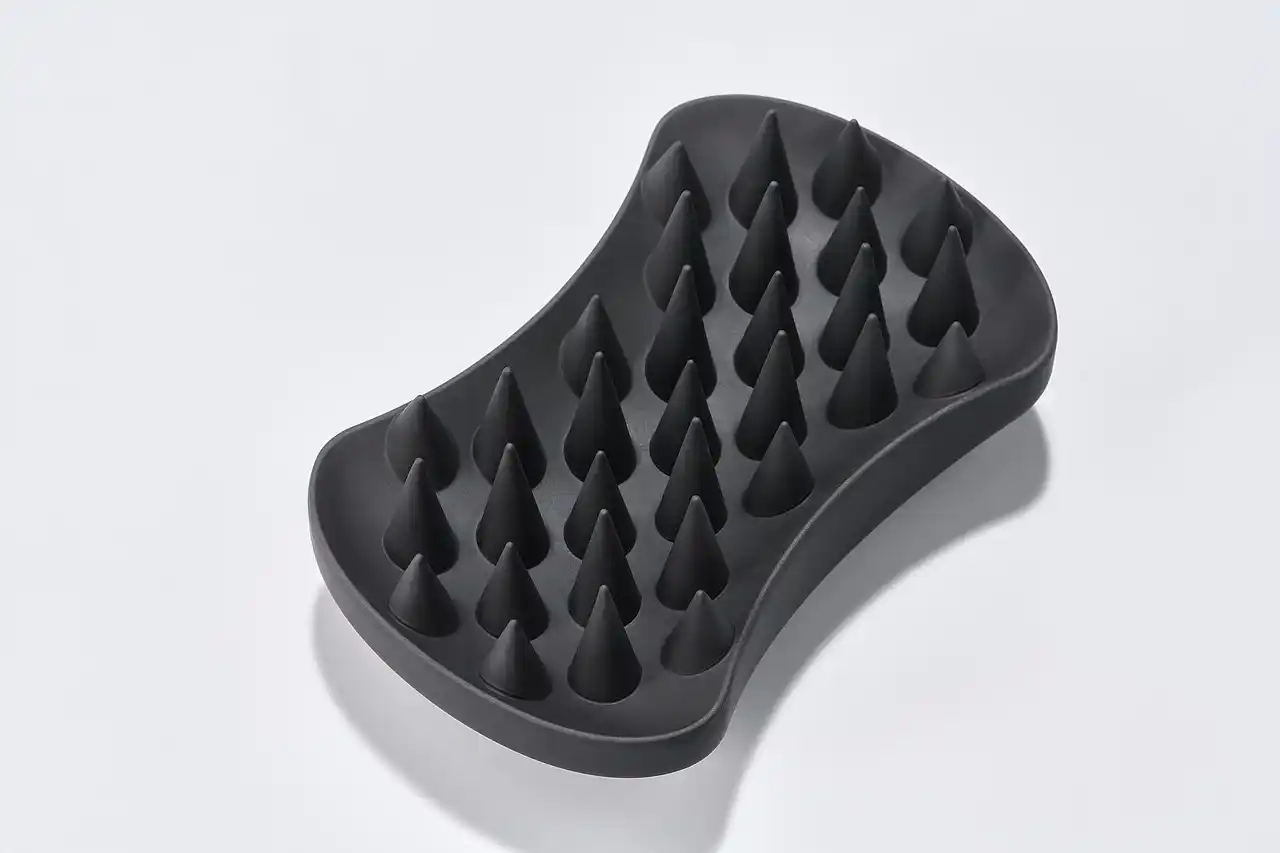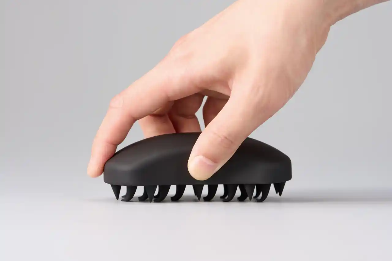 さらに、男性は力が強い傾向にあるため、突起の先端にはしなやかさと適度な弾力を持たせました。先が細めで長めの突起にすることで、頭皮を傷つけることなく程よい刺激を与えます。 |