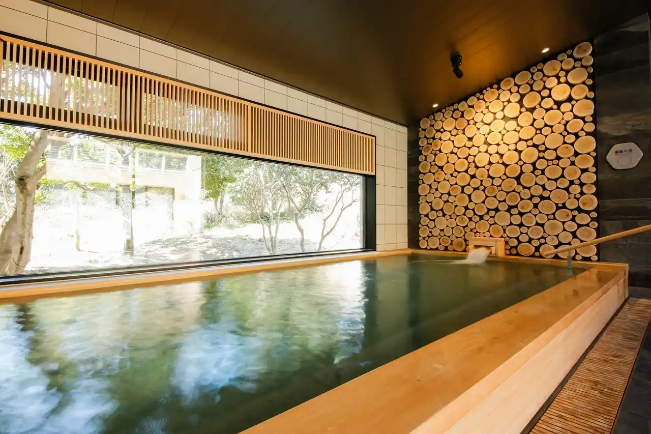 敷地内から湧く源泉の「潮騒の湯」、ミキモト コスメティックスと共同開発した「真珠の湯」、「合歓の木湯」の3種の湯めぐりで心身ともにリフレッシュ |