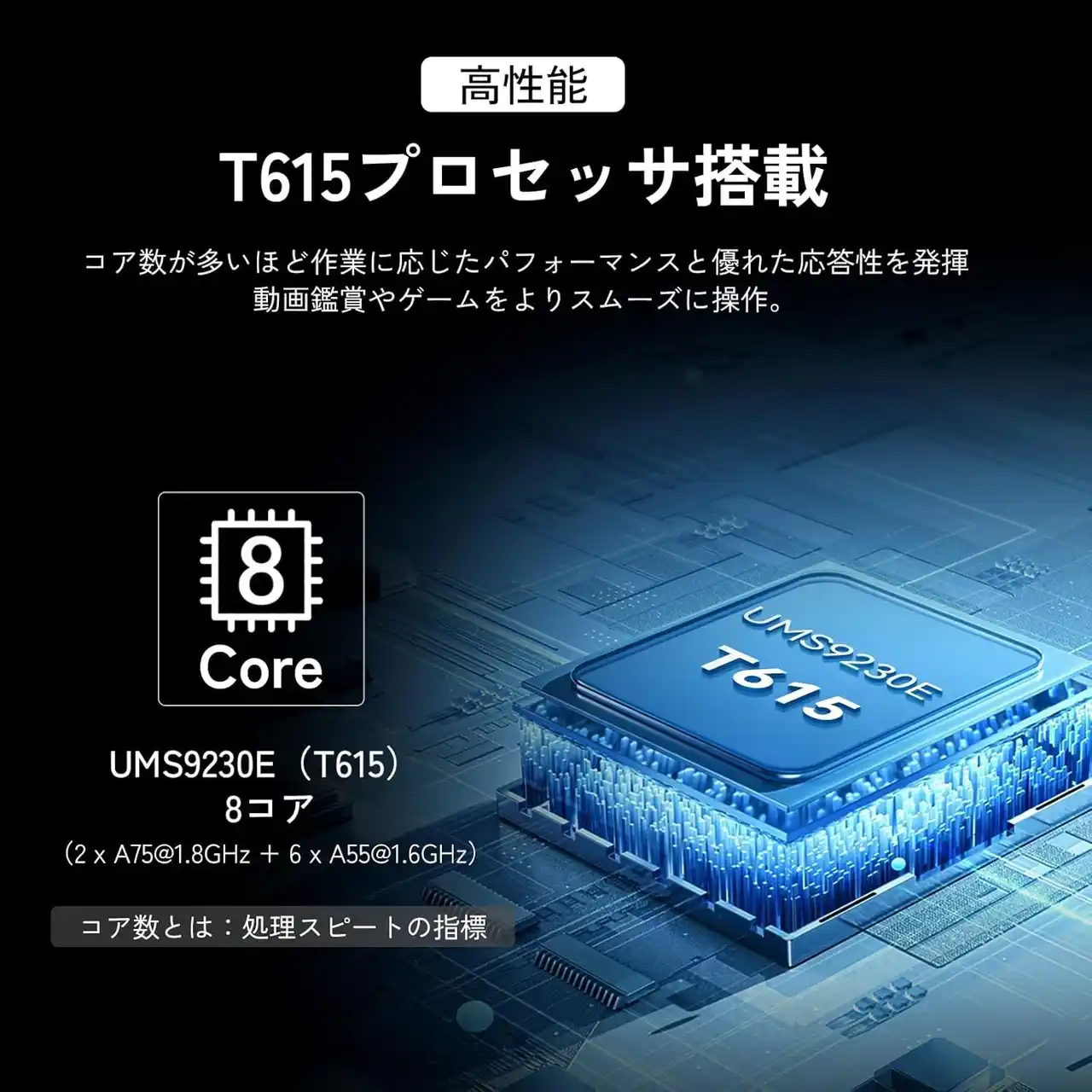 UNISOC T615 オクタコアプロセッサー |