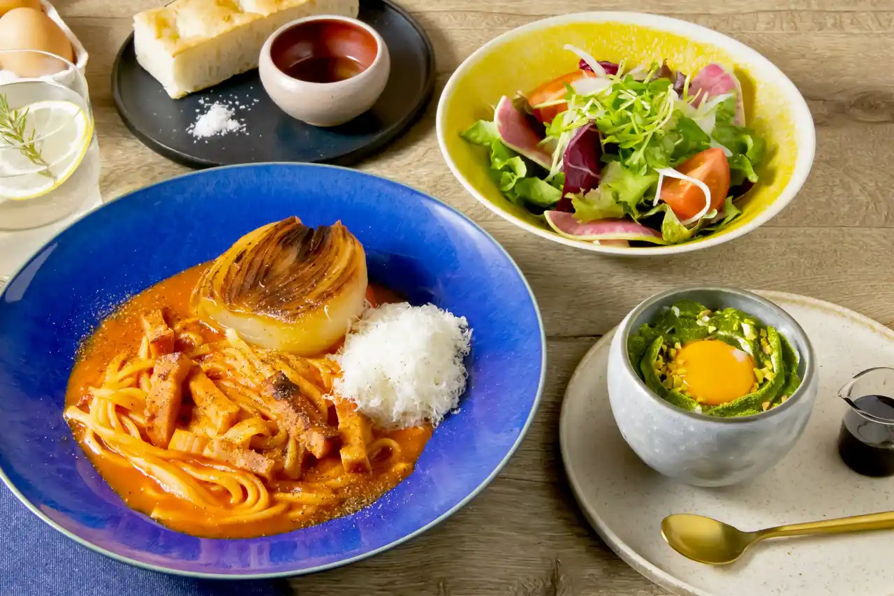 セット2180円(税込)~ 淡路島産北坂たまごとトマトの濃厚な旨みに、少しスパイシーさを加えて。 |