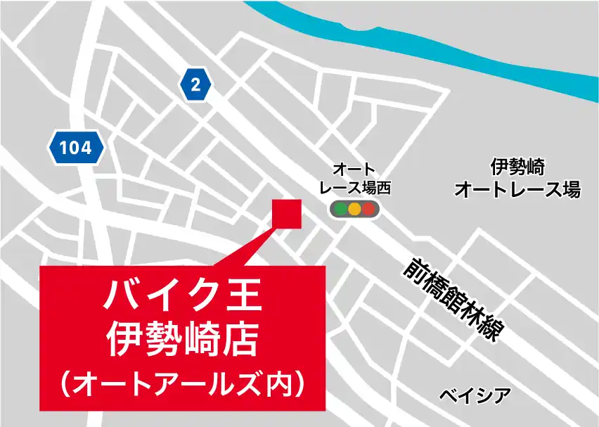 | 立地は、関東圏でカー用品専門店を広く展開する、株式会社オートアールズの伊勢崎宮古バイパス店内。国道17号・354号にも近く、群馬・埼玉・栃木エリアからアクセスしやすい好立地のため、ツーリングの途中でも気軽に立ち寄れる場所です。 | ||||||||