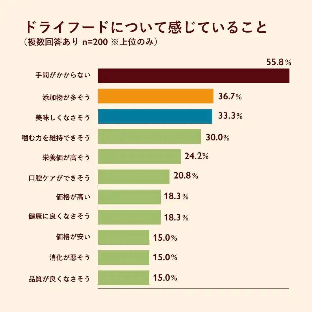 【モニター結果】いつものドライフード、味や添加物に不安や不満がある人は3人に1人。
