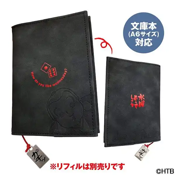 | 2026年は番組開始から30年目の記念すべき年、ということで、今回の水曜どうてちょうカバーはスペシャルバージョン!高級感があり、柔らかな手触りの黒の合皮に、表側は「How do you like wednesday?」の文字、裏側には「水曜どうでしょう」のロゴが赤で箔押しされています。オープニングでおなじみの「福助」や「onちゃん」などがさりげなくエンボス加工で入っているのもポイント。サイズもこれまでのカバーから一回り大きくなり、「どうてちょう」はもちろんのこと、A6サイズの一般的な文庫本も入る仕様にバージョンアップ! | |||