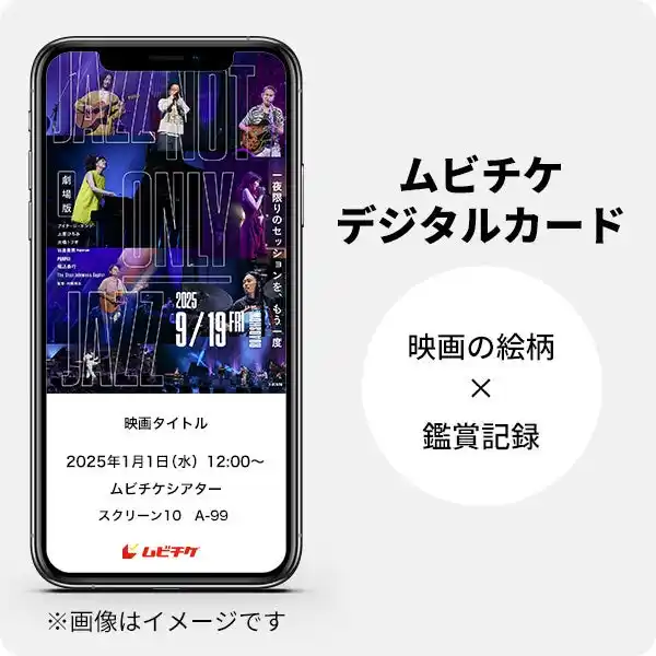 劇場版「JAZZ NOT ONLY JAZZ」のムビチケ前売券(オンライン)が絶賛発売中!購入者限定鑑賞特典として、ポスタービジュアルのアナザーカットを使用した限定画像〈ムビチケデジタルカード〉をプレゼント。鑑賞日・鑑賞映画館・上映回・座席番号が記録された“あなただけの記念画像”として、特別な一夜を形にして残せます。当日料金よりお得で手に入るこの機会を、ぜひお見逃しなく。 |
