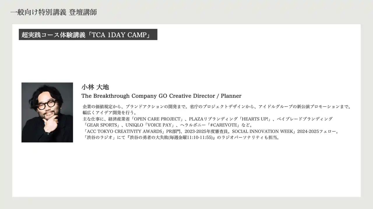 超実践コースの講義を体験できる「TCA 1DAY CAMP」を開催 |