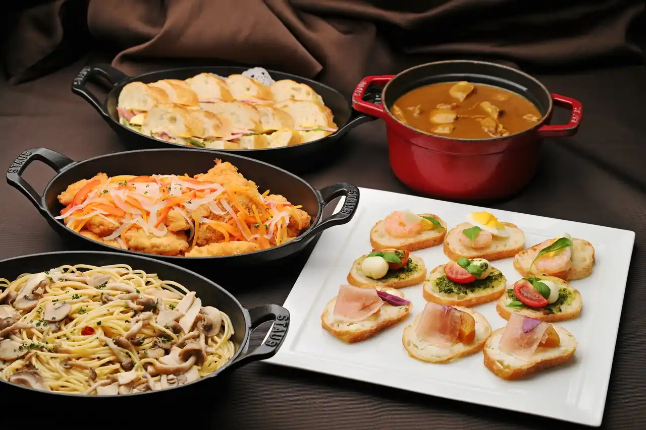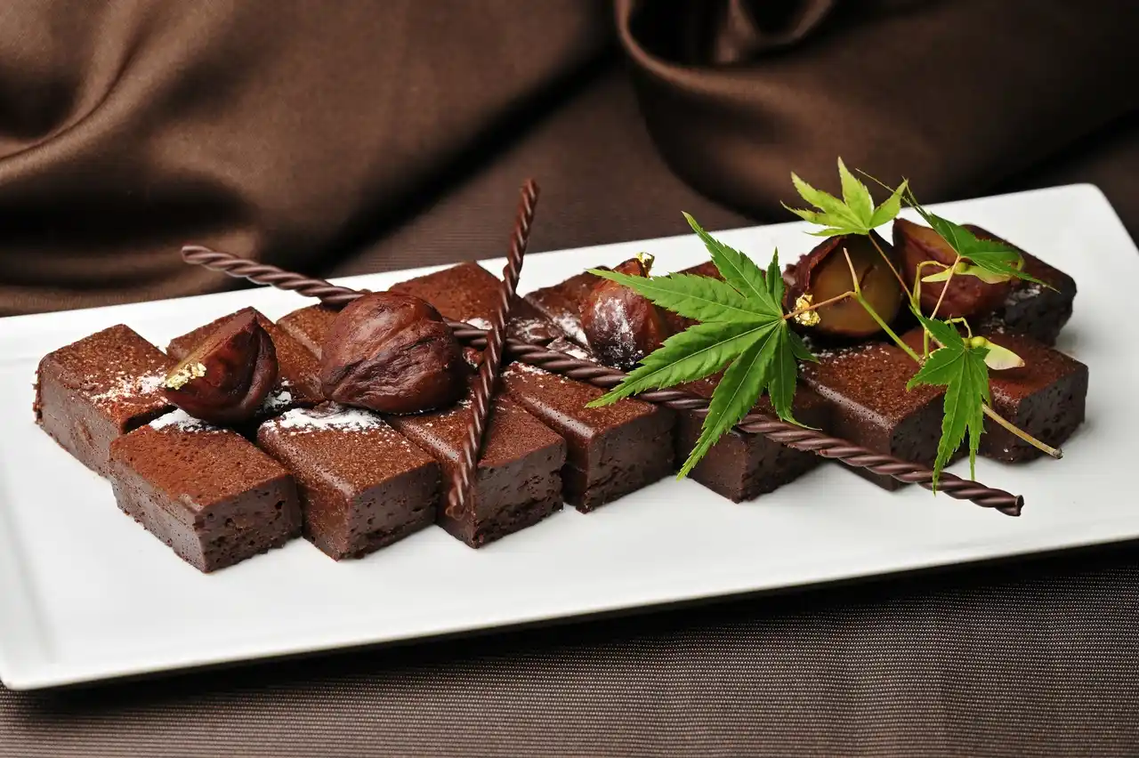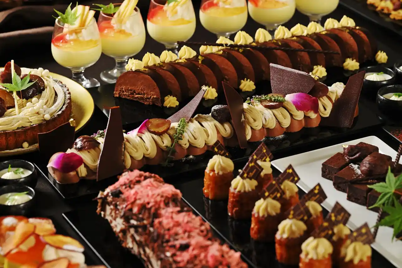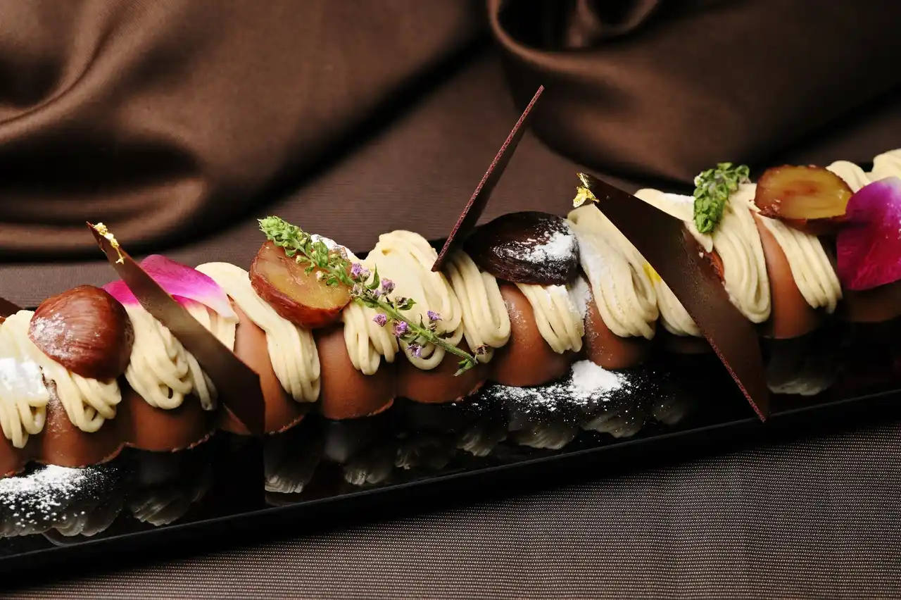 本ブッフェでは、コクのある和栗のクリームと濃厚なフランス産チョコレートが重なるムース、丹波栗とショコラのテリーヌ、土山抹茶ソースを添えた和栗のモンブランなど、多彩なマロン&ショコラスイーツをご用意しております。栗の優しい甘みとショコラのなめらかな口どけを、心ゆくまで味わっていただけます。スイーツのほか、チョコレート風味のカレー、和風きのこスパゲッティ、カナッペなど、セイボリーもご用意しております。 |