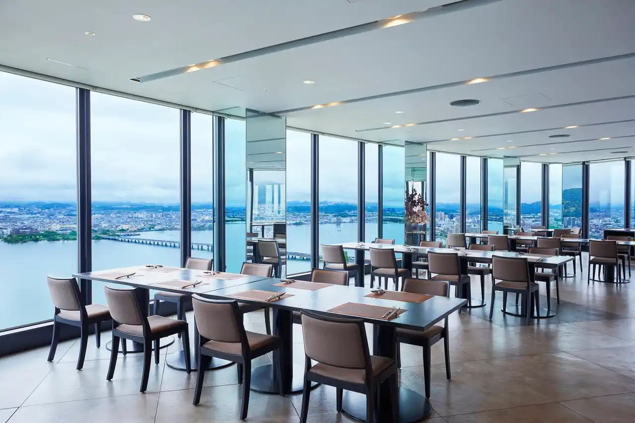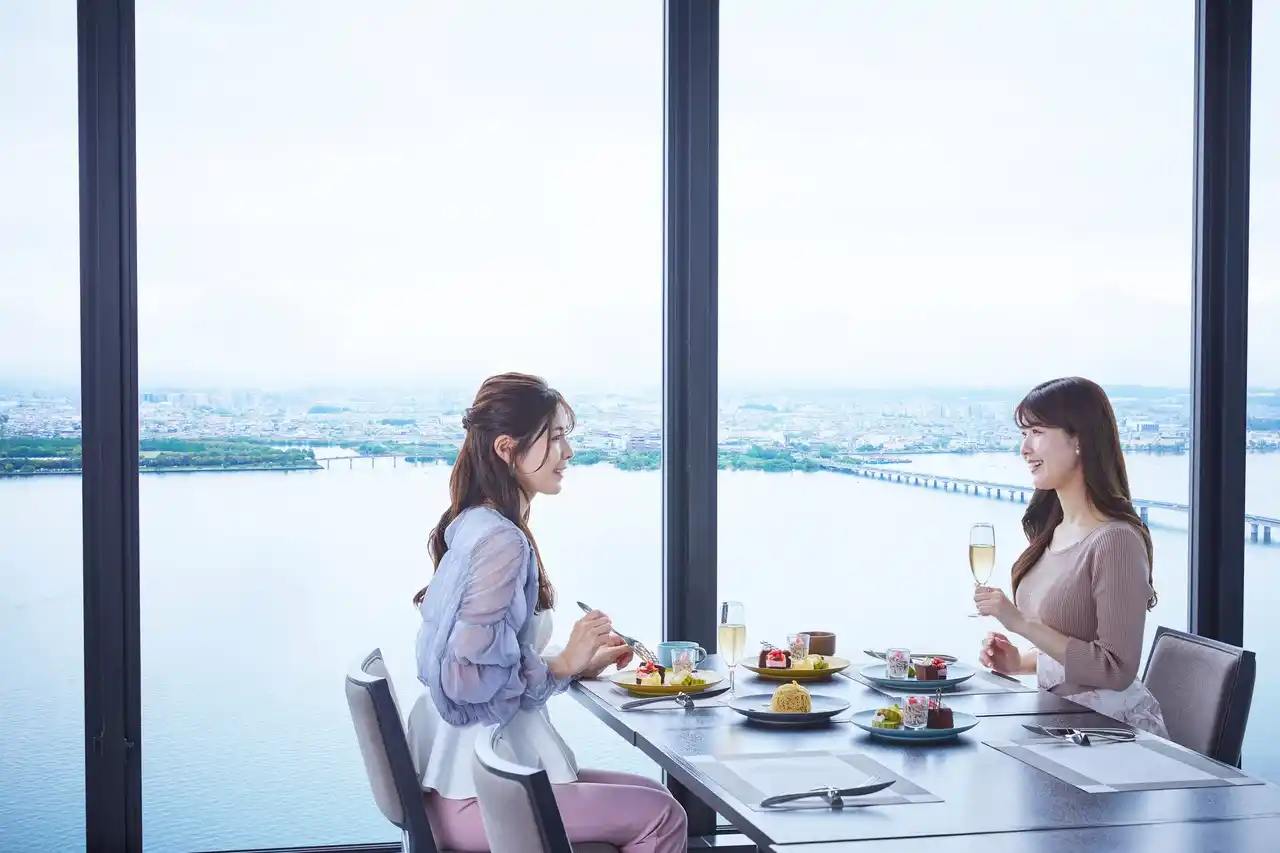 会場はホテル最上階のスカイラウンジ トップオブオオツ(38F)、びわ湖を一望できる絶景空間でスイーツブッフェをご堪能いただけます。女子会や母娘でのお出かけ、大切なご友人との思い出作り、または自分へのご褒美としてホテル最上階の特等席で優雅なひとときをお楽しみください。 |
