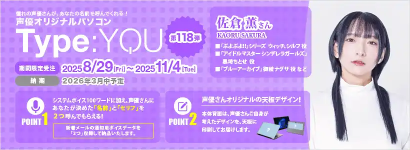 声優オリジナルパソコン【Type:YOU】第118弾 商品ラインナップについて |