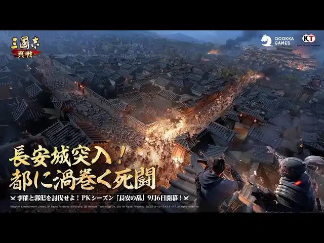 | Qookka Entertainment Limitedが株式会社コーエーテクモゲームスの歴史シミュレーションゲーム『三國志13』のIPを使用し、同社監修の元で開発されたスマートフォン向けゲームアプリ『三國志 真戦』。同ゲームにおいて9月6日(土)より新たなPKシーズン「長安の乱」が開始することをお知らせいたします。 | |||||||||