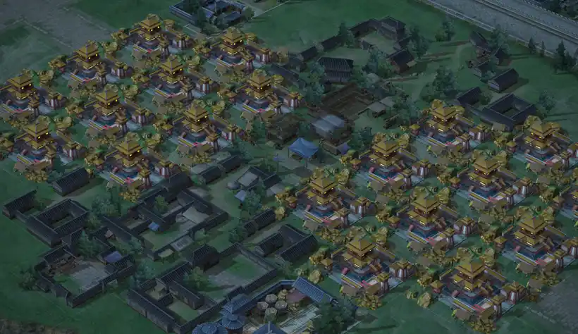 | 城内には個人建築(商店)と同盟建築の2種類の特別建築があります。個人建築は資源生産の強化、同盟建築は戦闘中の強化効果をそれぞれもたらします。 | |||||||||