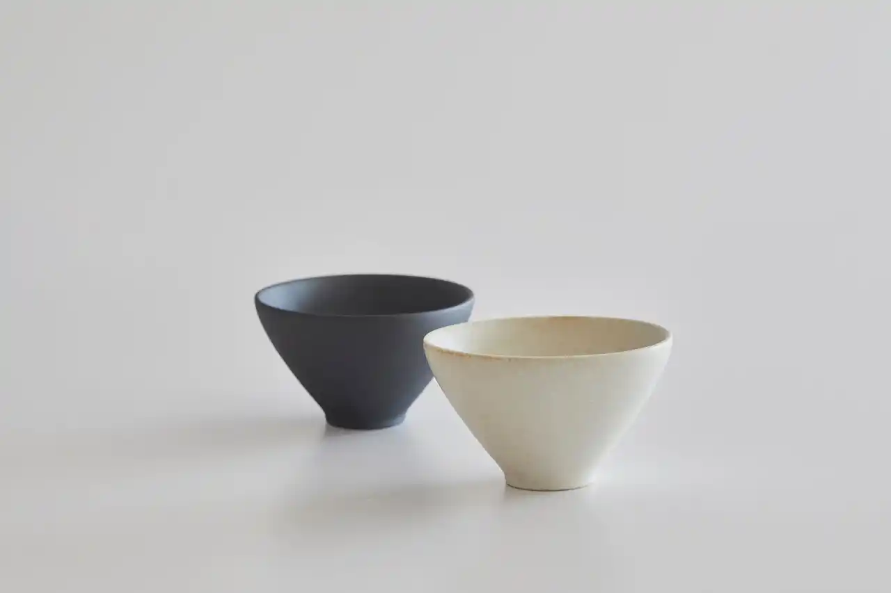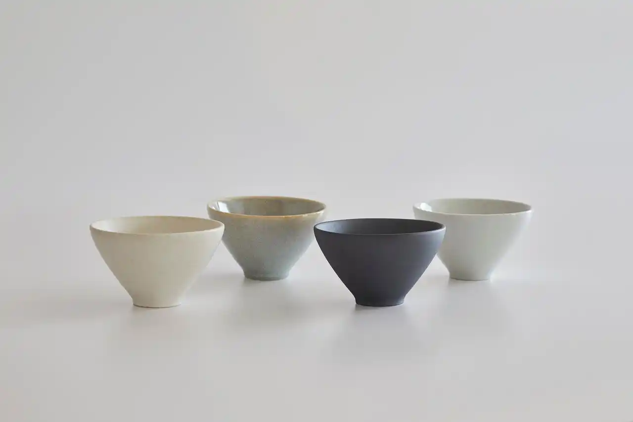 「よりそう入れ子碗」のカラーは、白・灰・黒と、長谷川あかりさんおすすめカラーのつや白を含めた計4色をご用意。黒のみ数量限定となります。 |