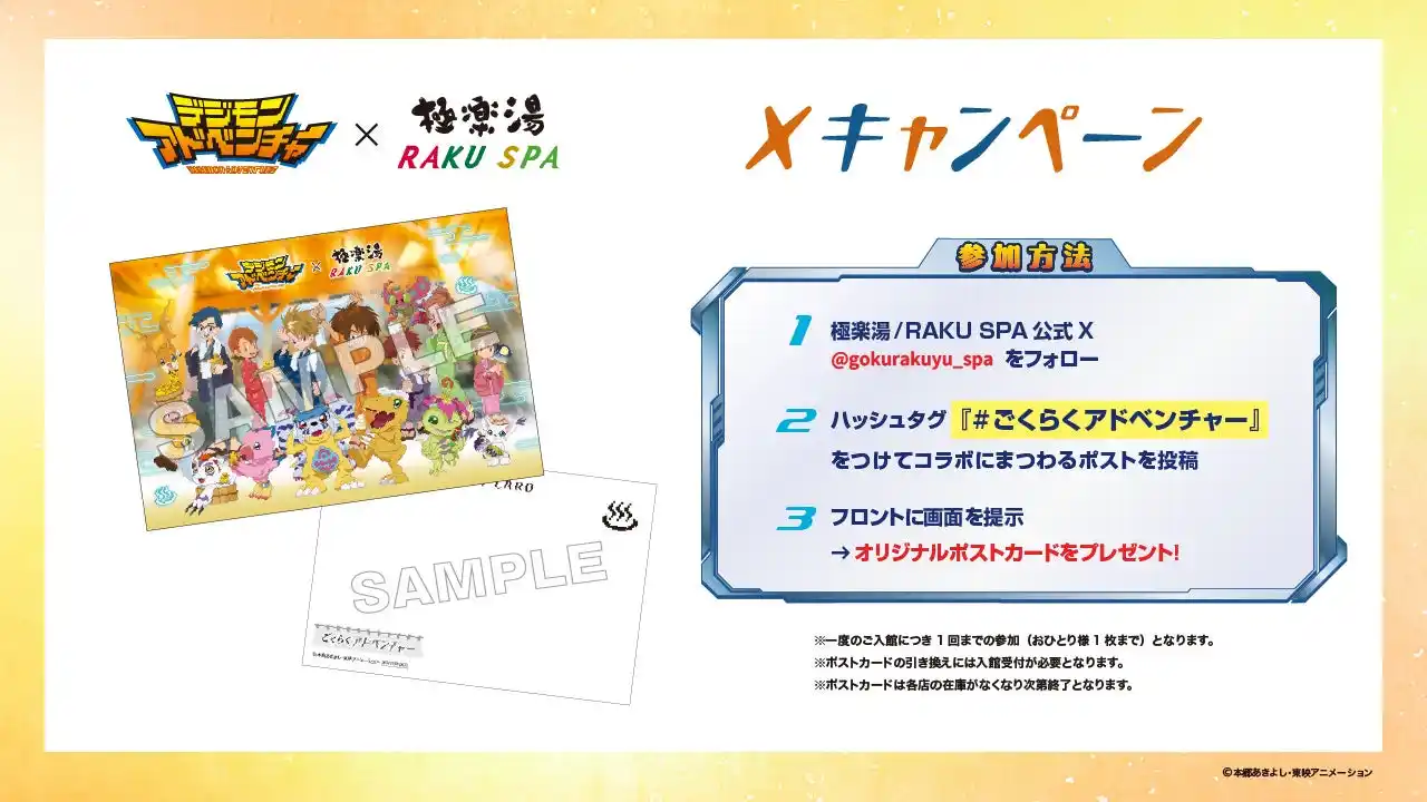 ■『デジモンアドベンチャー』×極楽湯・RAKU SPAコラボキャンペーン“~ごくらくアドベンチャー~”が9月11日(木)より開催決定! |