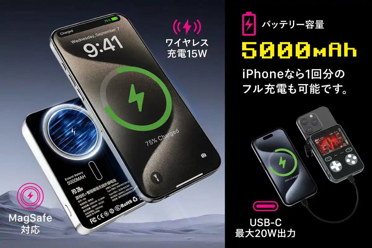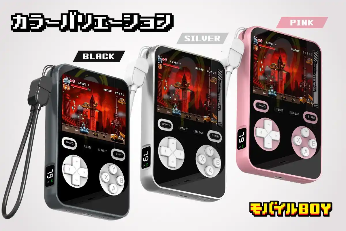 ゲームができるモバイルバッテリーという意外性は、プレゼントやSNS投稿の“ひとネタ”としても最高です。 しかも、見た目がポップで可愛く、カラーも3色展開(ブラック・シルバー・ピンク)。 |