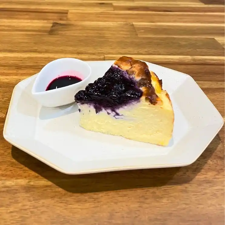 自家製ブルーベリーソースを贅沢に使った「ブルーベリーバスクチーズケーキ」を販売中です。 |