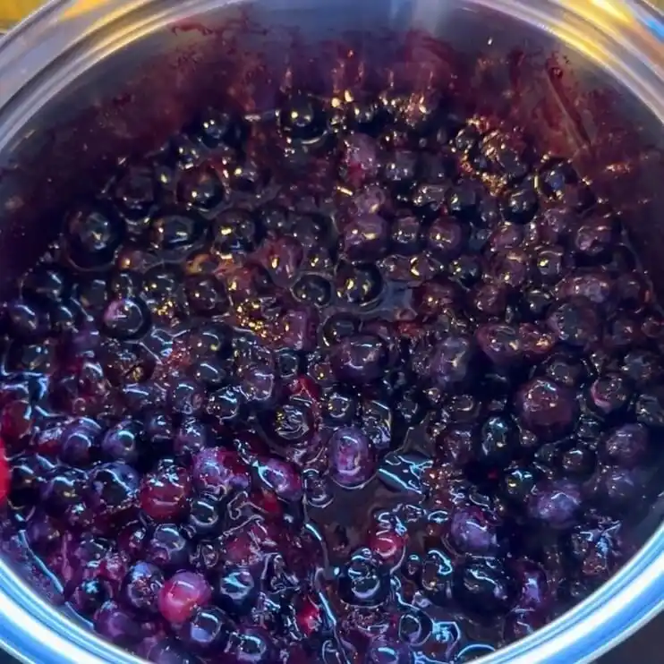 完熟ブルーベリーの果肉を残し、自家製ブルーベリーソースをたっぷりかけて食べます。 |