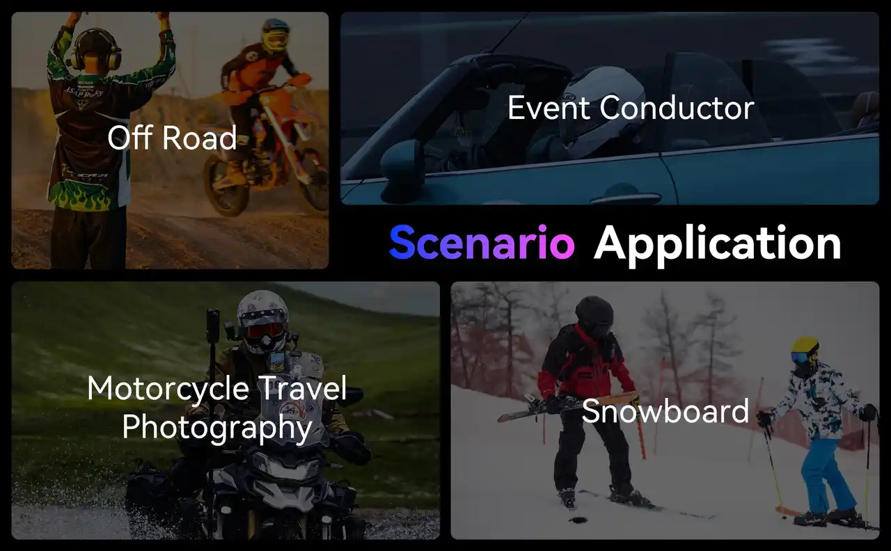また、イベント展示会や試乗会でのコミュニケーション、スノーボードなどのウィンタースポーツ、さらにはハードな環境のオフロード走行やバイクレッスンでも活用できる高い耐久性と利便性を備えており、あらゆるアクティビティに対応するインカムです。 |