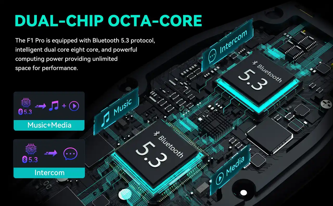 F1 Proは2025年の東京モーターサイクルショーに実機出展され、多くの来場者から反響を得ました。 ヘルメット装着時の美しさ、光るX字LEDインジケーター、音質のクリアさに「新しい次世代型だ」との声も多数。 |