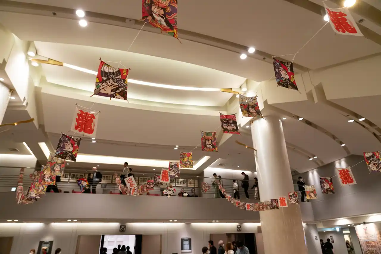 凧と獅子舞の演舞がロビーを彩り、新年らしく華やかにお出迎え (C)K.Miura |