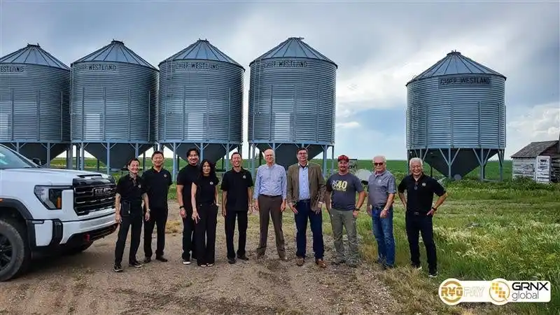 代表団は最先端の穀物貯蔵施設を視察し、GRNX Globalの生産チェーンに不可欠な農家と直接、意見交換を行いました。これらの議論を通じて、RYOPAY(ステーブルコイン)が決済の効率化やサプライチェーンの透明性向上、そして農業エコシステム全体のエンパワーメントに大きく寄与する可能性が明らかになりました。訪問の締めくくりとして、すべての関係者による画期的な合意書に署名がなされ、カナダの穀物取引インフラの中核としてRYOPAY(ステーブルコイン)を導入するというコミットメントが正式に確立されました。 |