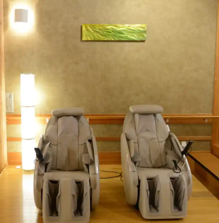 周りを気にせず、自分だけの時間を過ごしたい方に。マッサージチェアに深く腰掛け、読書や音楽鑑賞に集中したり、目を閉じて物思いに耽ったり。誰にも邪魔されず、ご自身の世界に浸れるプライベートな空間です。また、和室スペースではい草の香りが心地よく、落ち着いた和の空間です。足を伸ばして座ったり、時にはごろんと横になったり。まるでご自宅の居間にいるかのように、心からリラックスしてお過ごしいただけます。ゆったりとした時間をお楽しみください。 |