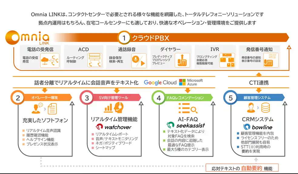 | 近年ますます加速するコンタクトセンター業界における労働人口不足への対応や、生成AI活用への期待の高まりを背景に、このたび再販契約締結を通じて両社の連携を深め、より幅広い顧客基盤へのアプローチを目指します。 | |||