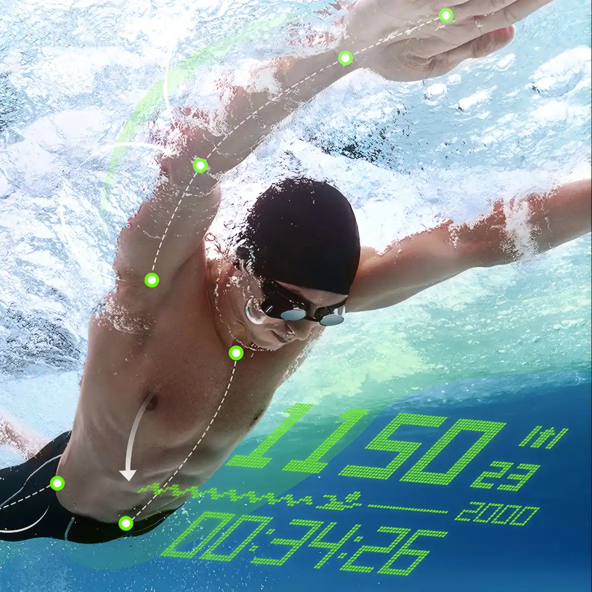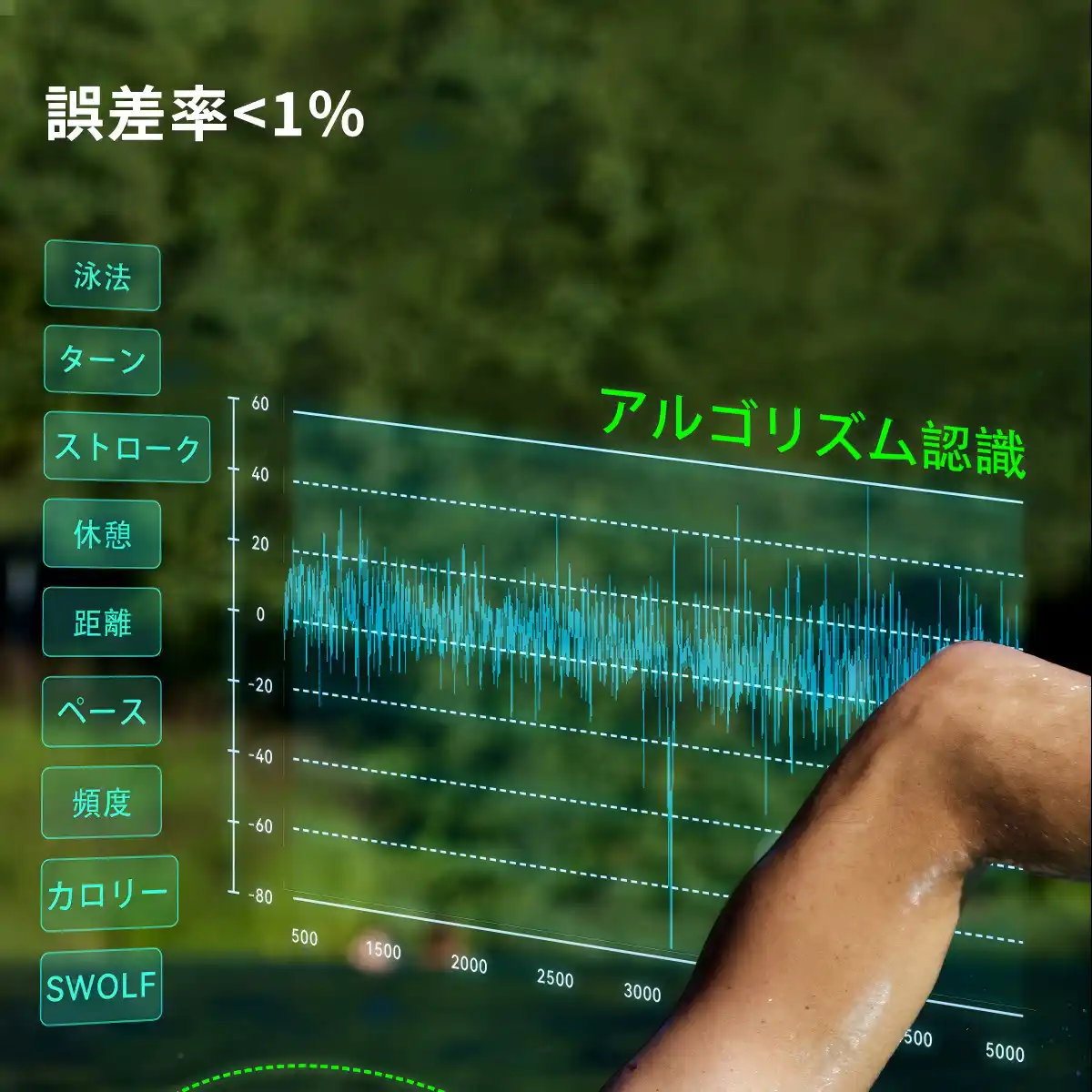 ・リアルタイム計測、泳ぎながらすぐ見える! |