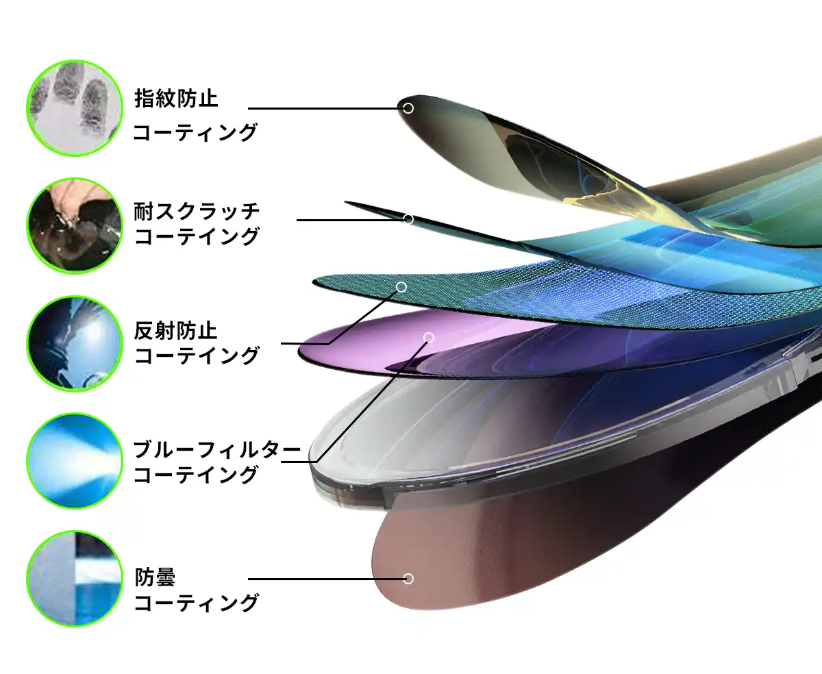 ・優れた防曇コーティング(1,000回以上拭いても曇らない) |