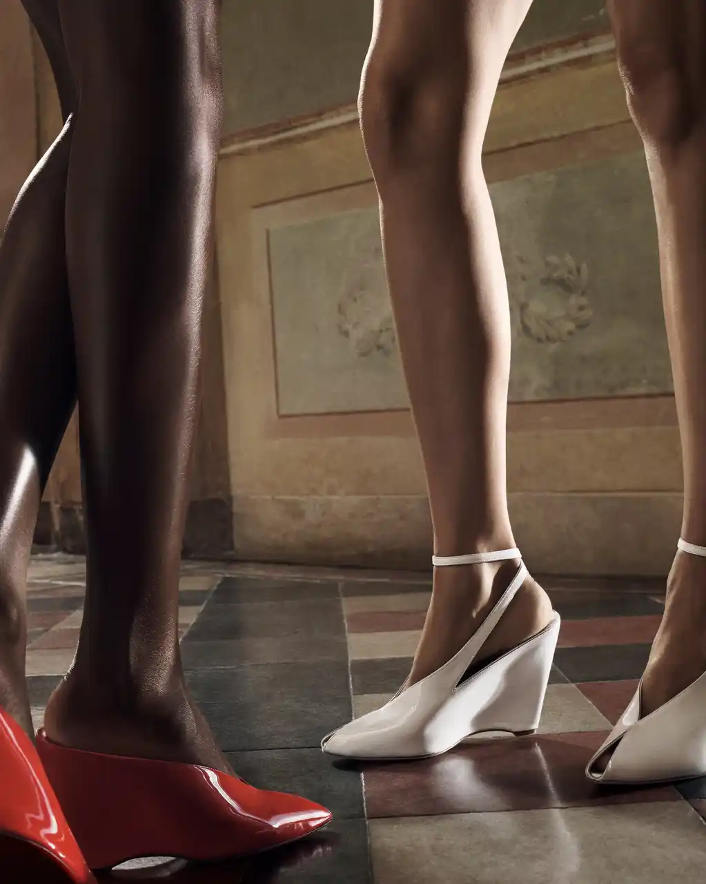 今季のキーアイテムにも注目が集まる。シームレスなパテントレザーで包み込まれた流線形の未来派的グラフィックを描くウェッジヒール。シルクドレスに漂う軽やかさとエレガンス。緻密なバランスで仕立てられたテーラリングが生み出す洗練された無造作の魅力。そしてパンプスに咲き誇る手作業で組み立てられたフラワーや、レディ・トゥ・ウェアにあしらわれたポピーの花々が、2025年秋冬ショーの豊かな感情をそのまま映し出す。 |