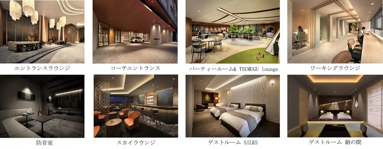 本物件は、高さ6m超のエントランスラウンジをはじめ、パーティールーム&TSUMUGU loungeやワーキングラウンジ、防音室、さらに30階にはスカイラウンジを設け、タワーならではの品格を享受できる共用部をご用意しました。また、来客時には宿泊可能なゲストルーム2種類がご利用いただけます。入居者以外の方も寛げる空間を提供いたします。 |