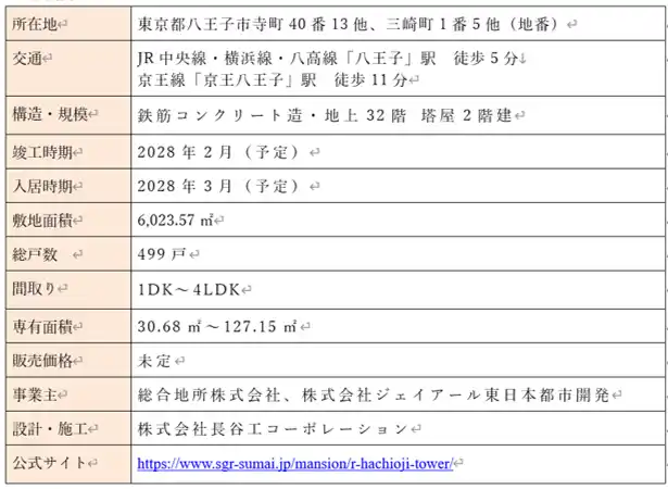 公式サイト:https://www.sgr-sumai.jp/mansion/r-hachioji-tower/ |