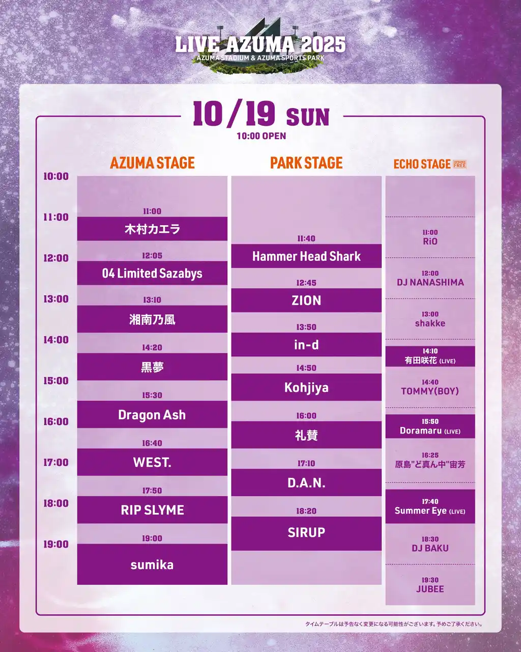 LIVE AZUMA 2025 ステージ割&最終出演アーティスト発表 |