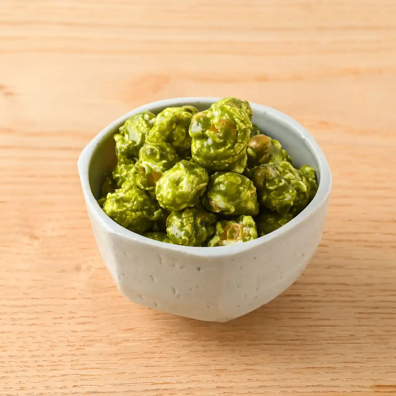 | 静岡県の山間地域で栽培された茶葉を使用した「天空の抹茶(R)」のポップコーン。 | |||