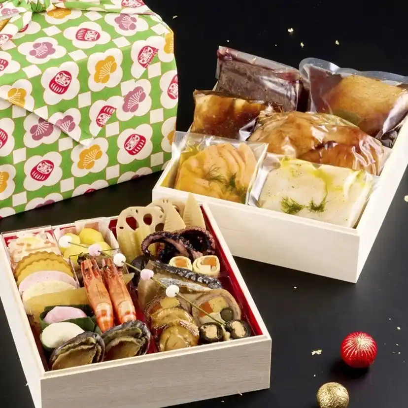 すし半粋』では、毎年ご好評いただいている「梅の花のおせち」を、2025年9月1日からご予約受付を開始いたします。 新年の門出を華やかに彩る、こだわりのつまったおせちを4種類ご用意いたしました。梅の花グループならではの湯葉や豆腐を活かした料理や伝統的な品から豪華食材までを詰め合わせ、様々なシーンに対応するラインナップでございます。 また、今年の風呂敷は、新しい年が素晴らしい一年になるよう願いを込めて、縁起の良いデザインにこだわりました。 おめでたい赤色の風呂敷には、梅の花と幸福や繁栄を願う「鯛」をあしらっています。鮮やかな緑色の風呂敷には、梅の花とともに「七転び八起き」の願いが込められた「だるま」を上品に配しました 。おせちを包むだけでなく、新年を寿ぐ気持ちを表現した特別な風呂敷です。 さらに、梅の花グループ公式アプリ「うめのあぷり」の会員様限定で、おせちのご購入でポイントが2倍になるお得なキャンペーンも実施いたします。数量限定のため、お早めのご予約をおすすめします。 |