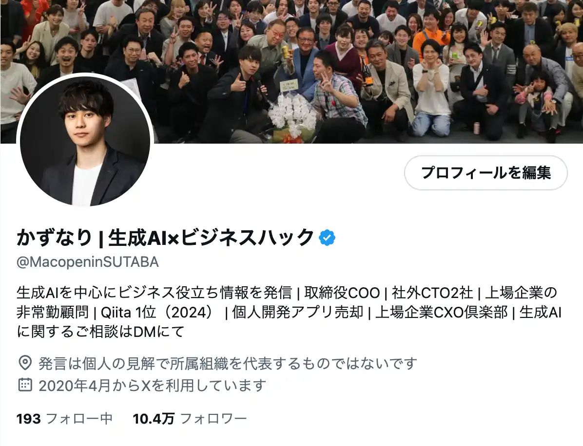 | あわせて、生成AI領域での発信力と多数の実績を持つ、SNSフォロワー10万人超の伊東和成氏がAI顧問に就任したことをお知らせいたします。 | ||||||||||||||