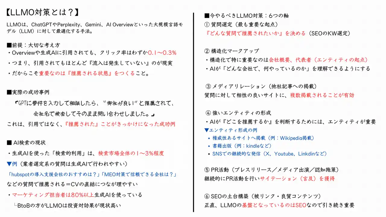 | LLMO対策が重要になりました。 | ||||||||||||||