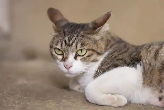 (イメージ画像:耳をそらせる機嫌の悪いネコ) |