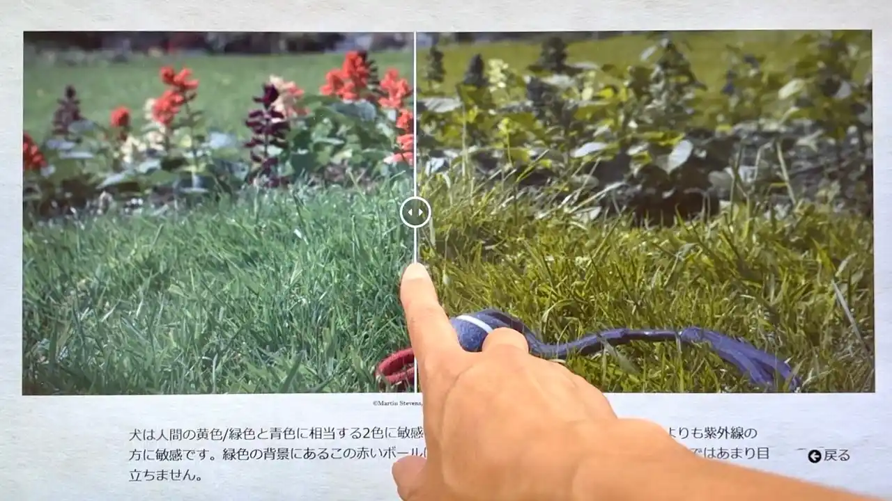 【体験展示:ヒトとイヌの色覚を比較してみよう】 |