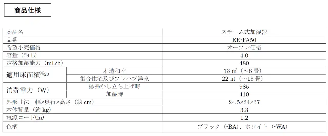 「STAN.」シリーズにスチーム式加湿器が新登場!「EE-FA50」 |