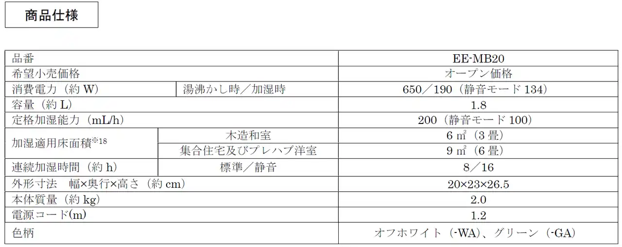 寝室に使えるコンパクトタイプ「EE-MB20」 |