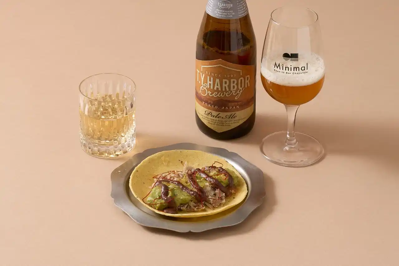 コースには、スイーツだけでなく塩気のきいたフードもご用意しており、今回はカカオを使ったオリジナルソース「モレ」を合わせたタコスをご用意しました。 |