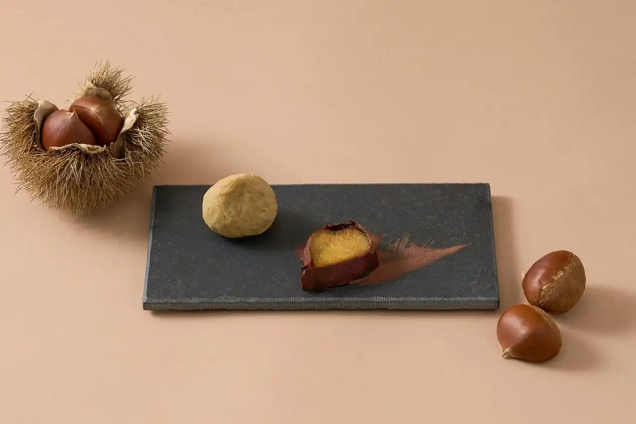 茨城県・笠間の栗を主役に7つのパーツで構成した、チョコレートと和栗の幾重にも広がる豊かなハーモニーをお楽しみいただける一品です。 |