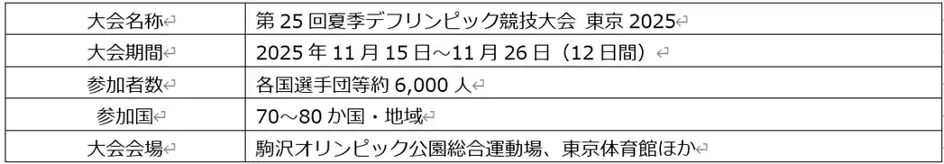 このたび、「第25回夏季デフリンピック競技大会 東京2025」のゲームズサポートメンバーの協賛の機会をいただけましたことを、深く感謝申し上げます。 |