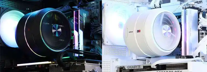 「ZET5」シリーズは、ジェットエンジンをモチーフにした円形デザインが特徴のデュアルファンCPUクーラーです。ユニークなデザインとアドレサブルRGBライティングがPC内部を際立たせ、マグネット式で着脱できるリング型ファンを採用することで組み立てやすいデザインとなっています。 |