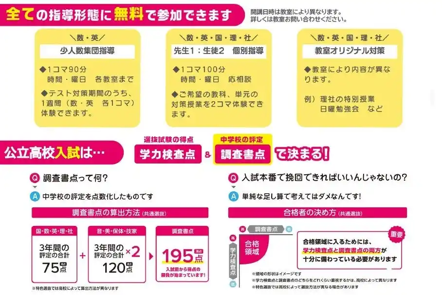 各教室それぞれのテスト対策イベントにもご参加いただけます。 |